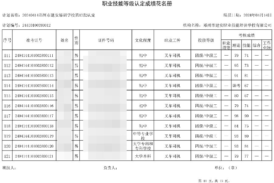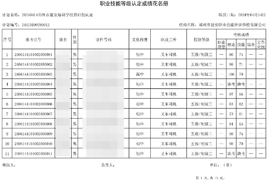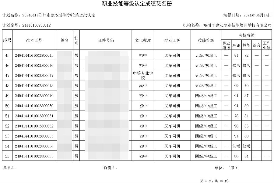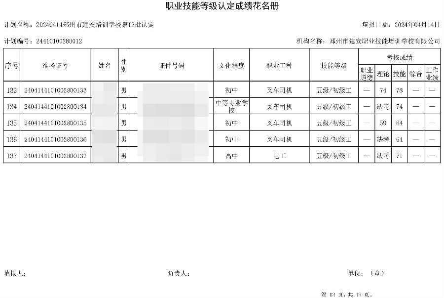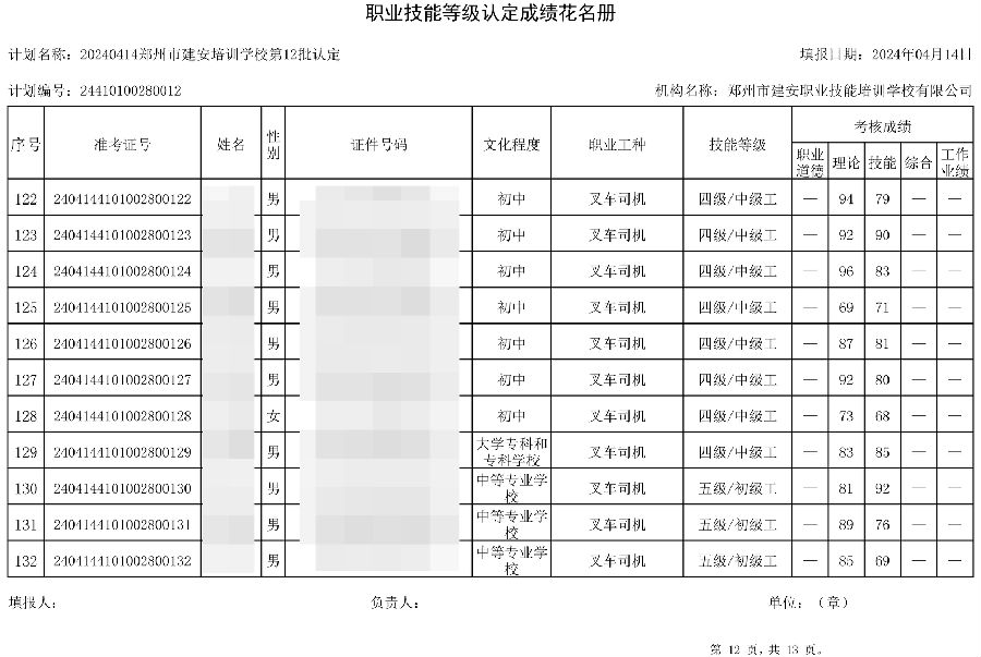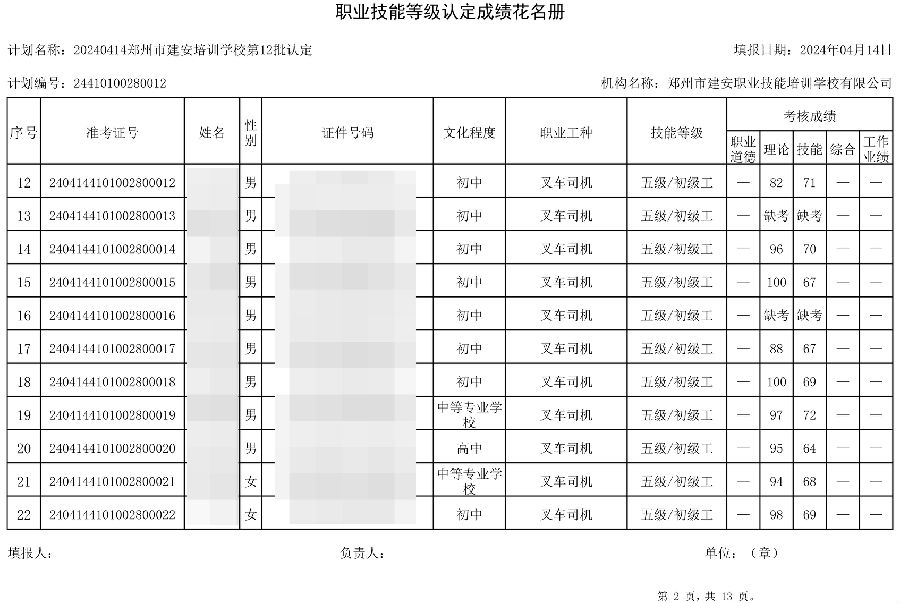 建安职业技能培训学校-第12批职业技能等级认定考试成绩公示