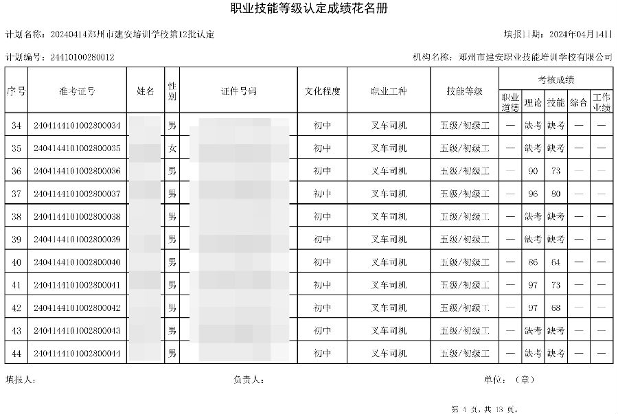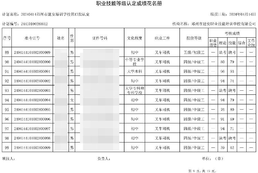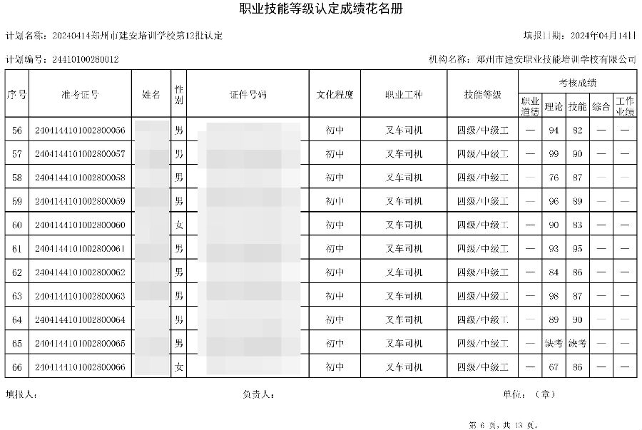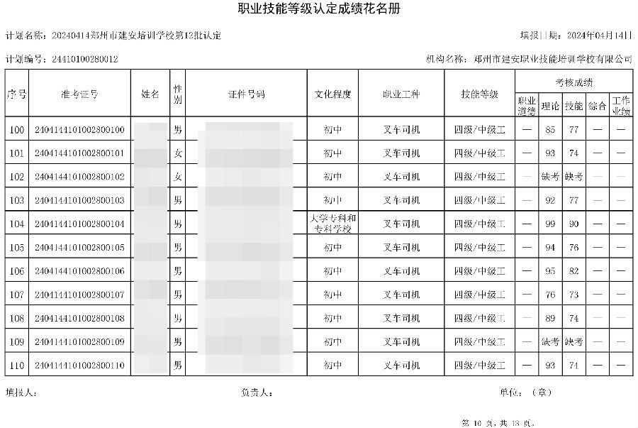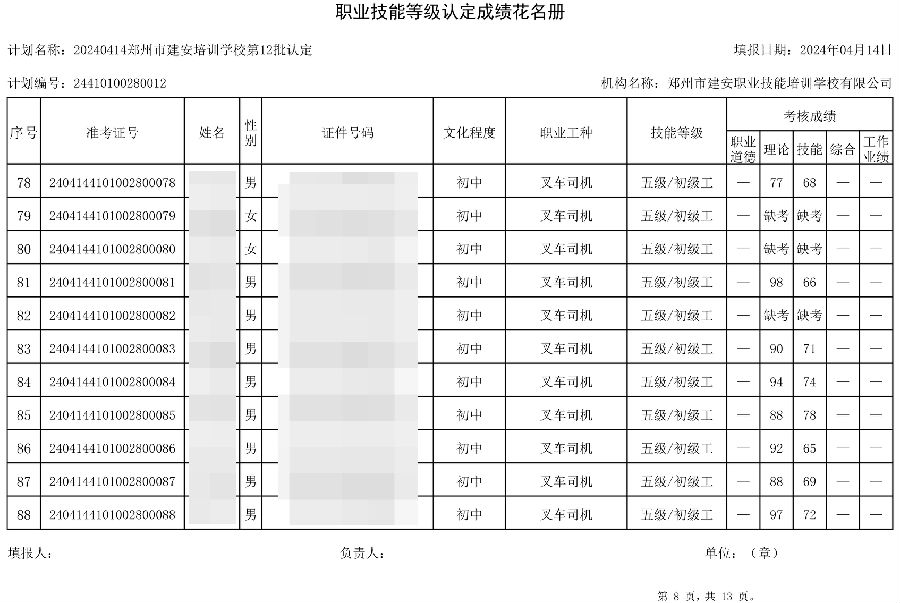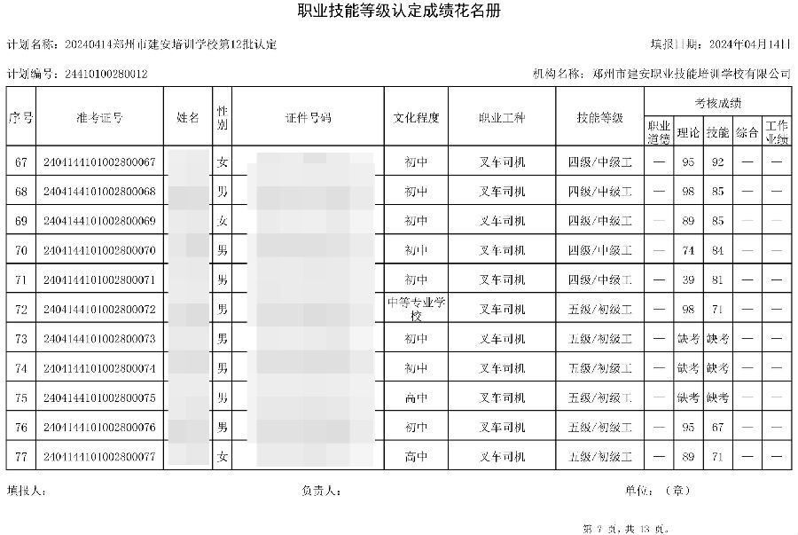 建安职业技能培训学校-第12批职业技能等级认定考试成绩公示