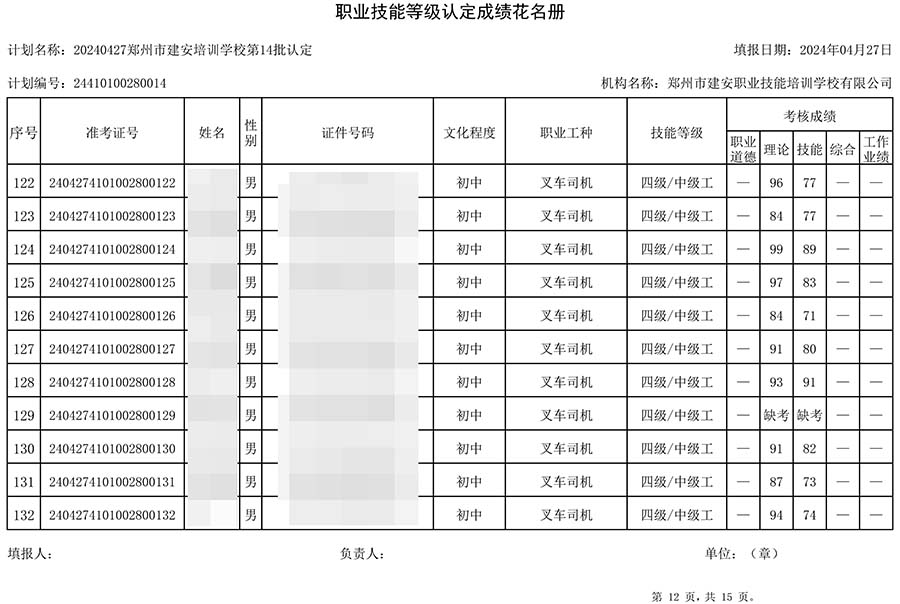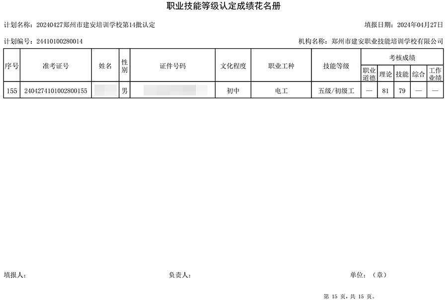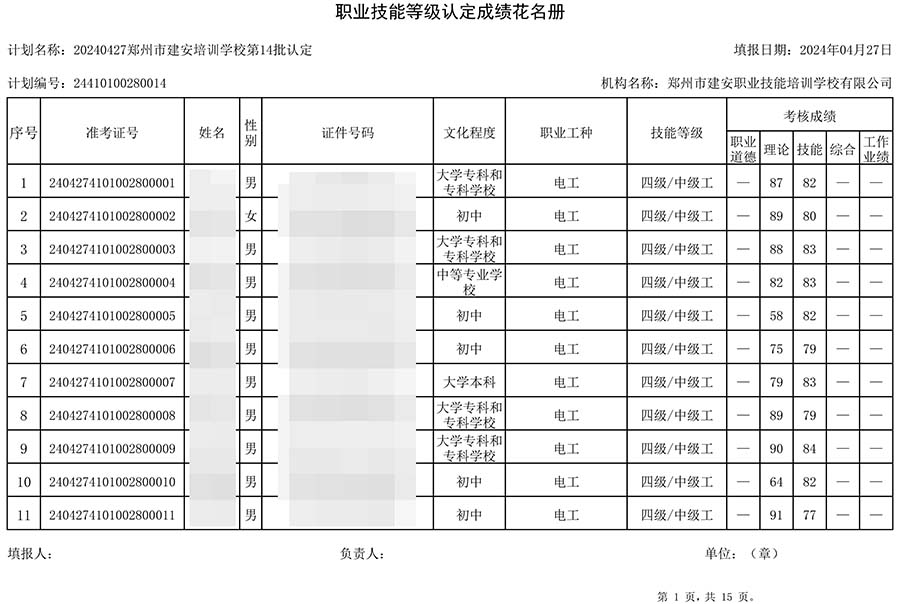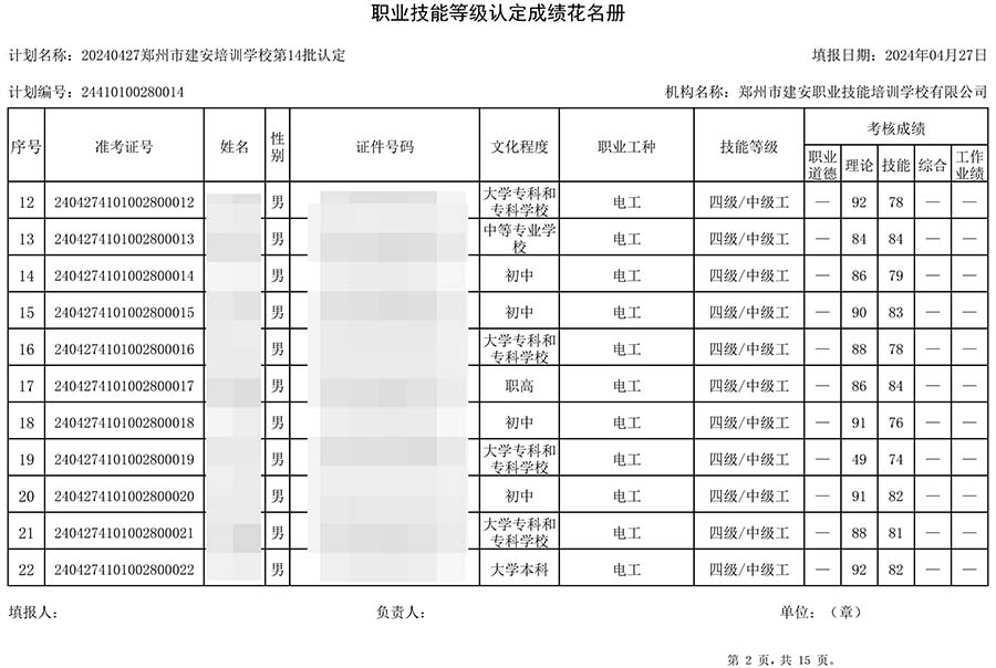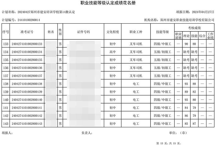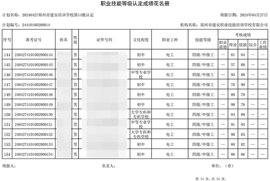 建安职业技能培训学校-第14批职业技能等级认定考试成绩公示