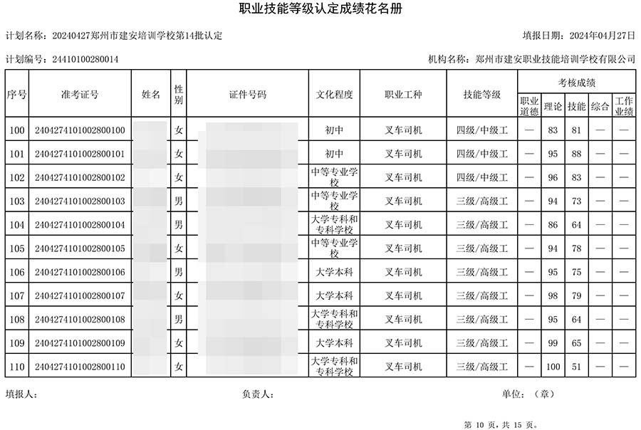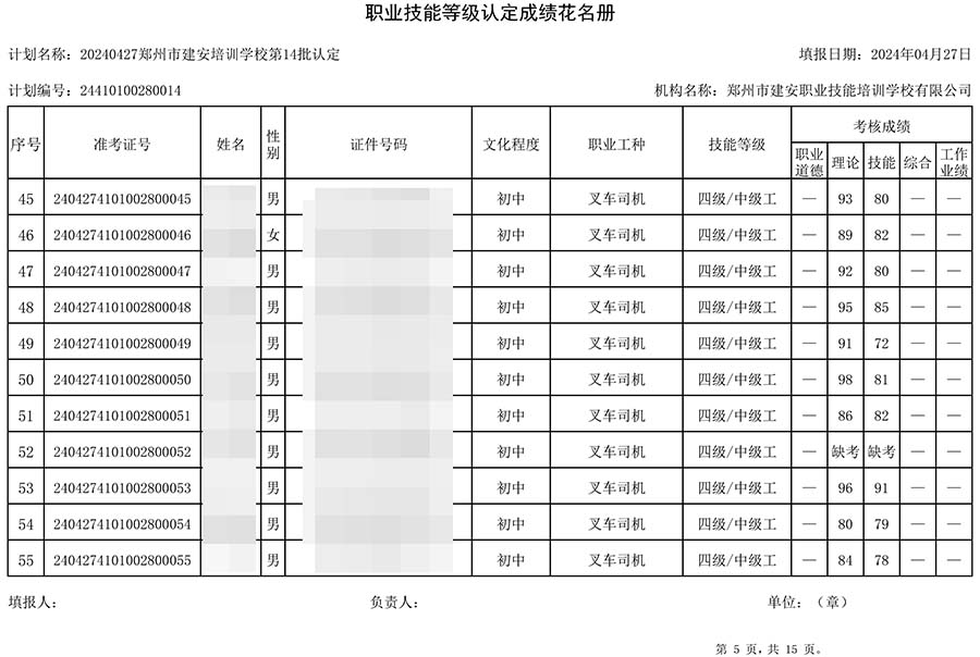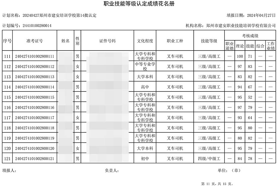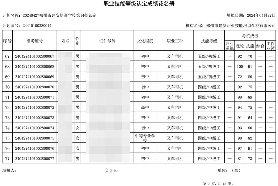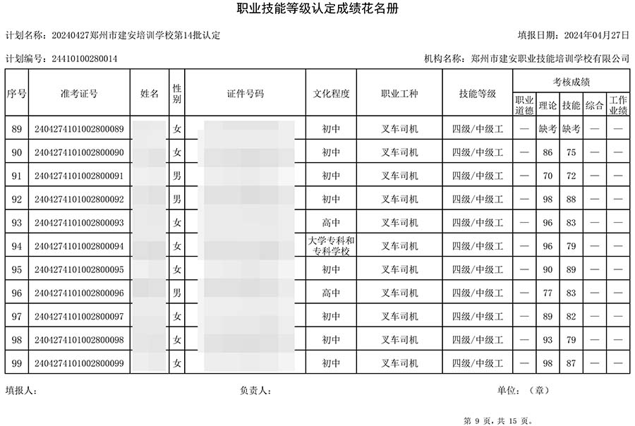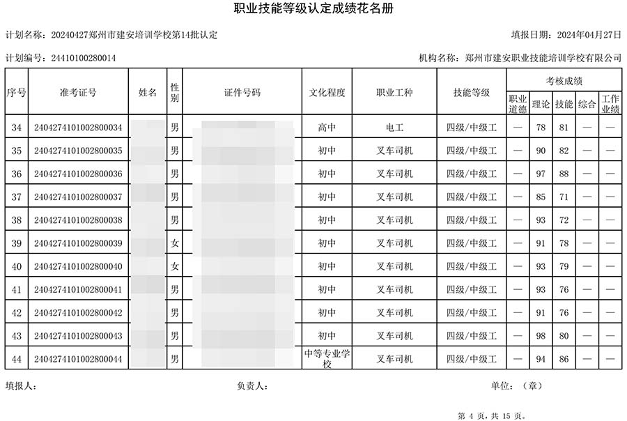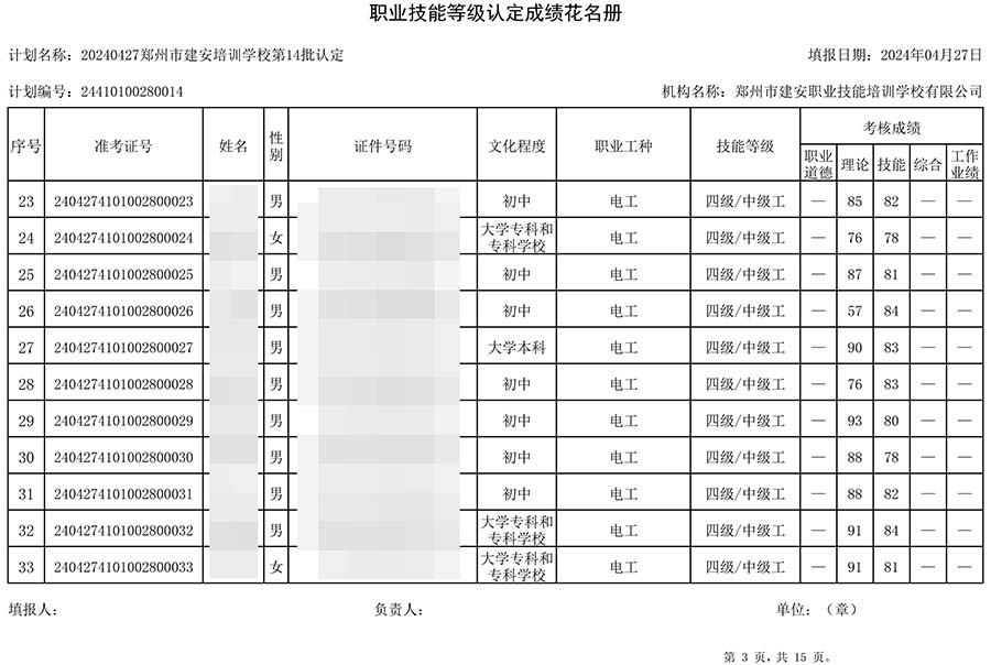 建安职业技能培训学校-第14批职业技能等级认定考试成绩公示