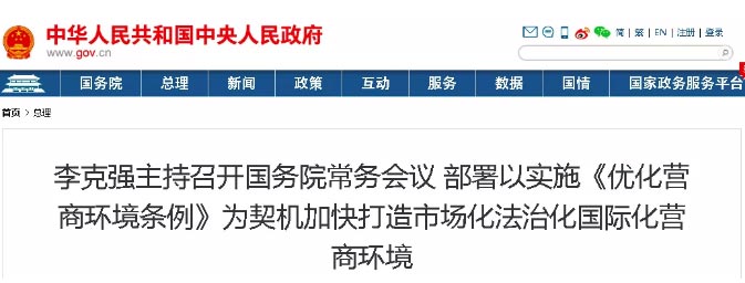 会议指出,优化营商环境就是解放生产力、提升竞争力,是增强市场活力、稳定社会预期、应对经济下行压力、促进发展和就业的有效举措。明年1月1日实施的《优化营商环境条例》,总结了近年来深化“放管服”改革、优化营商环境的成效和经验,从法制层面明确了打造市场化法治化国际化营商环境的要求。各地各部门要深刻认识我国营商环境还需更大努力加以改善和优化,这方面不平衡问题仍然突出。