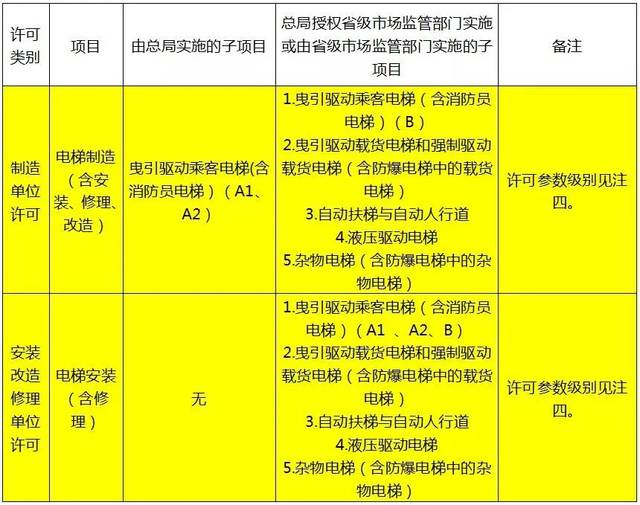 附1:摘取电梯部分行政许可事项