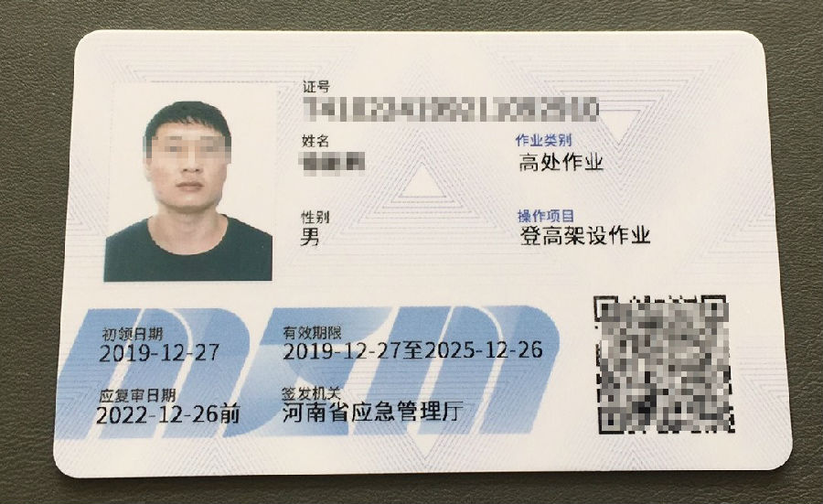 应急管理厅颁发的是《中华人民共和国特种作业操作证》,有PVC卡实体证书、电子证书和纸质打印证书三种形式。PVC卡实体证书正面印有可利用手机扫描查询证书信息的二维码,背面使用渐变蓝色,印有中国国徽标志。电子证书遵循全国统一标准,由全国安全生产培训考试信息管理平台统一签发、统一管理、统一验证,与实体证书一一对应、状态相同、功能相通。