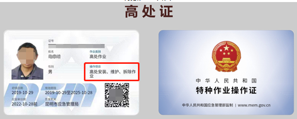 高处安装维护拆除作业的特种作业操作证特种作业操作证新取: