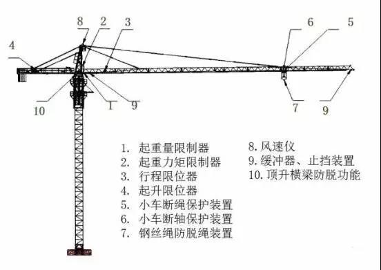 塔机的安全装置是为了防止司机误操作,或操作装置发生故障失效而设置的。