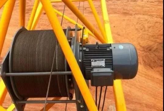 d、钢丝绳虽然没有断丝,但钢丝绳磨损达到其直径的40%,或钢丝绳相对于公称直径减小7%甚至更多时,或钢丝绳明显弯曲等。